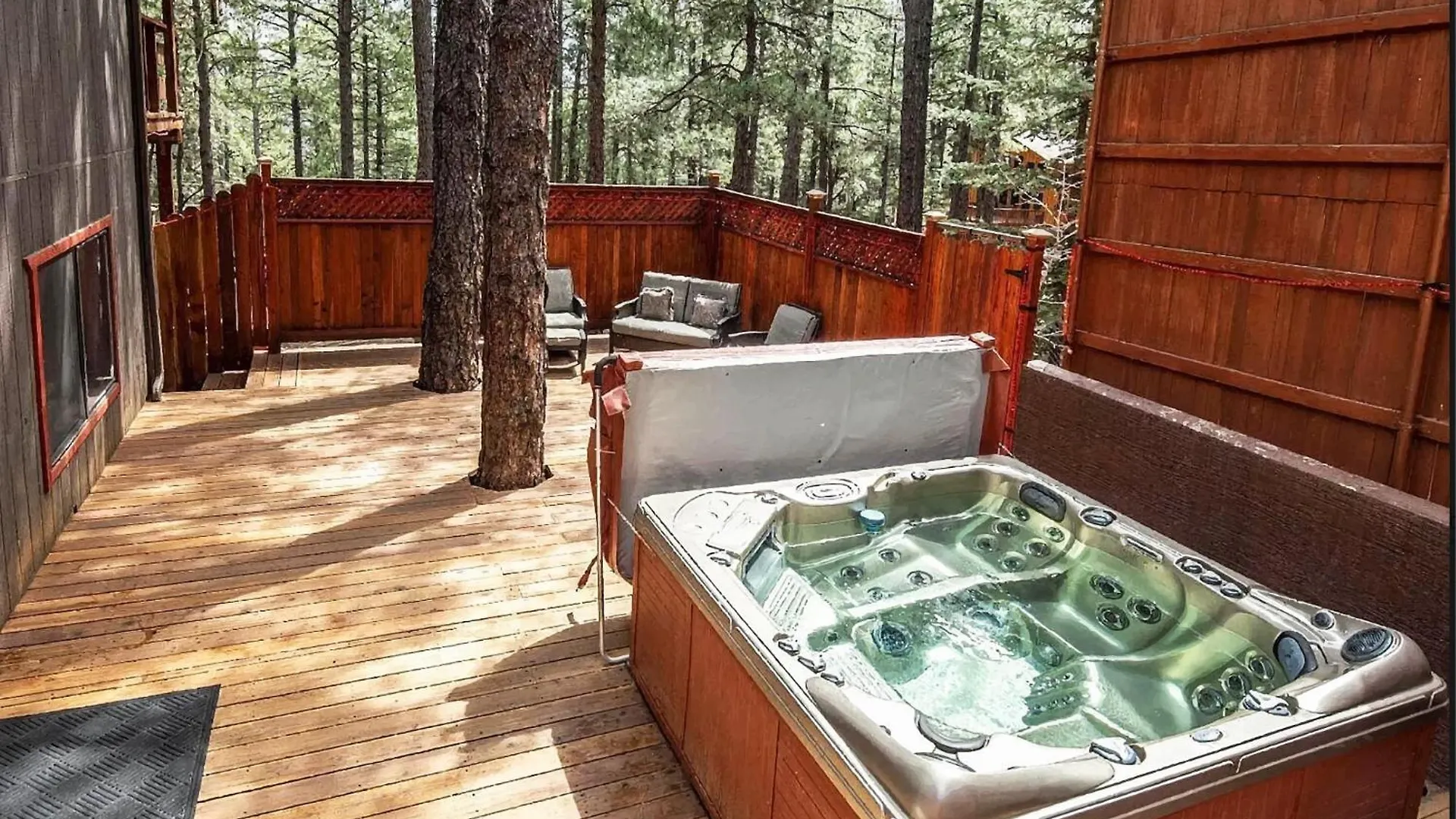 Eternal Treehouse Hot Tub Outdoor Paradise Entertainment Scenic Pine Views